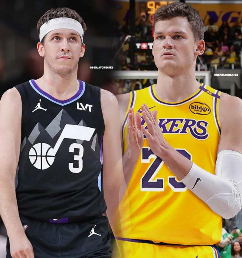虎扑09月26日讯 LakeShowYo更新X,晒出一张湖人球员奥斯汀-里夫斯和爵士球员沃克-凯斯勒互换球衣的合成图与球迷分享。