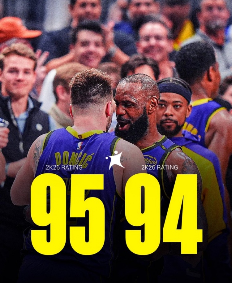 8月25日讯 NBA2K 26的新赛季评分已经正式出炉,詹姆斯94,东契奇95。