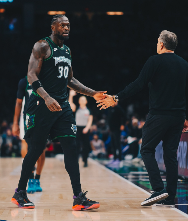 重新回到赛场之后,兰德尔的状态有所提升,四节战罢将自己的命中率提升到了15投7中,贡献了23分、11个篮板和4次助攻的个人数据,和他搭档内线双塔的戈贝尔也抢下了12个篮板,帮助森林狼在篮板球上完爆灰熊。