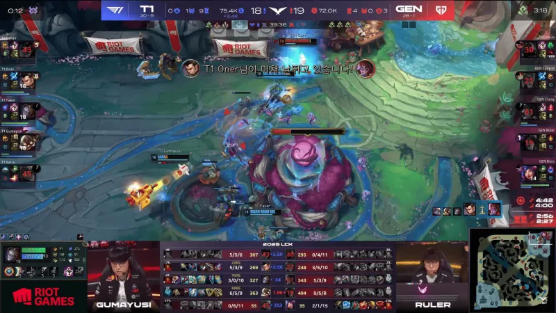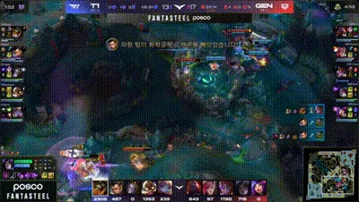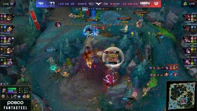 比赛第23分钟,两队爆发厄塔汗团。GEN先手打出1换3,但Faker发条神来之笔TP抢到厄塔汗并打出3换3。